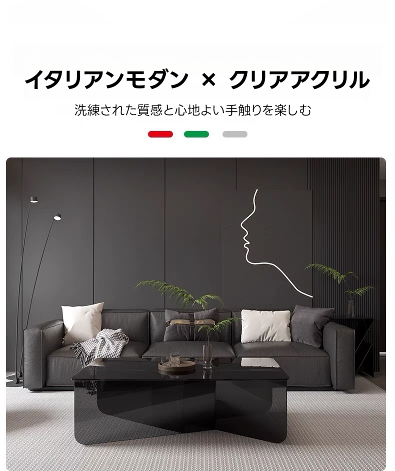 - 【洗練されたシンプルモダンデザイン】:このアクリルローテーブルは、シンプルでありながらモダンなデザインを採用し、どんなインテリアにも自然に溶け込みます。透明感のあるクリアアクリル素材が、空間にアートのような輝きをもたらします。