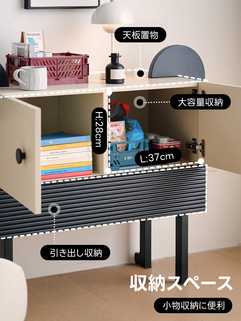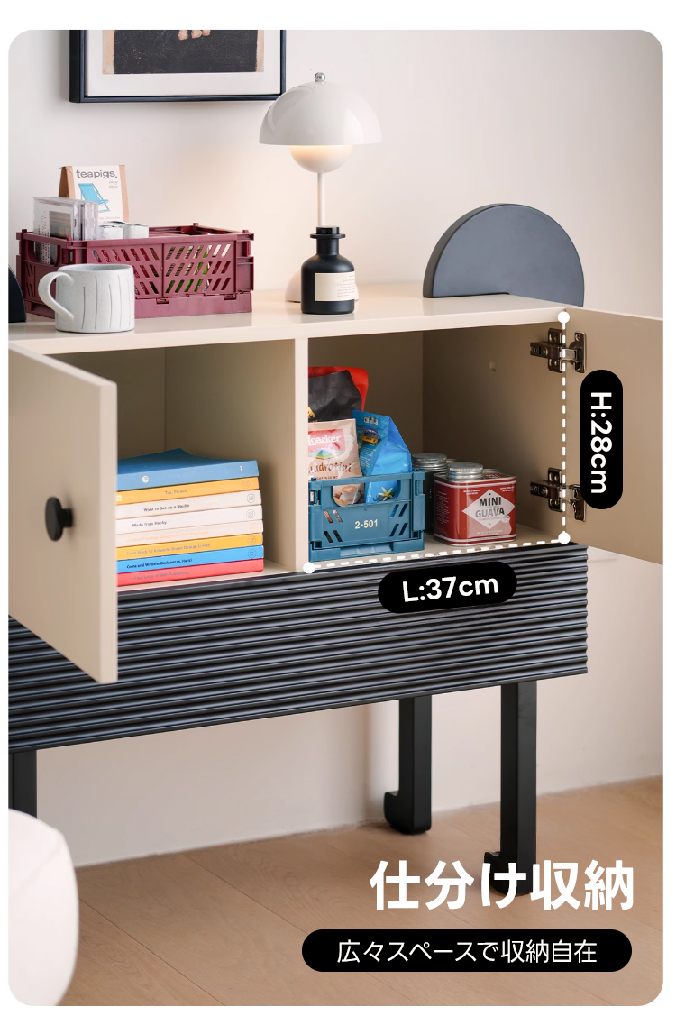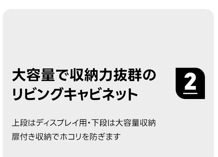 - 【便利な収納スペース】上段はディスプレイ用、下段は大容量の収納スペースがあり、扉付きでホコリを防ぎます。引き出しはスムーズに開閉でき、日常使いに便利です。収納家具としての機能性を最大限に発揮します。