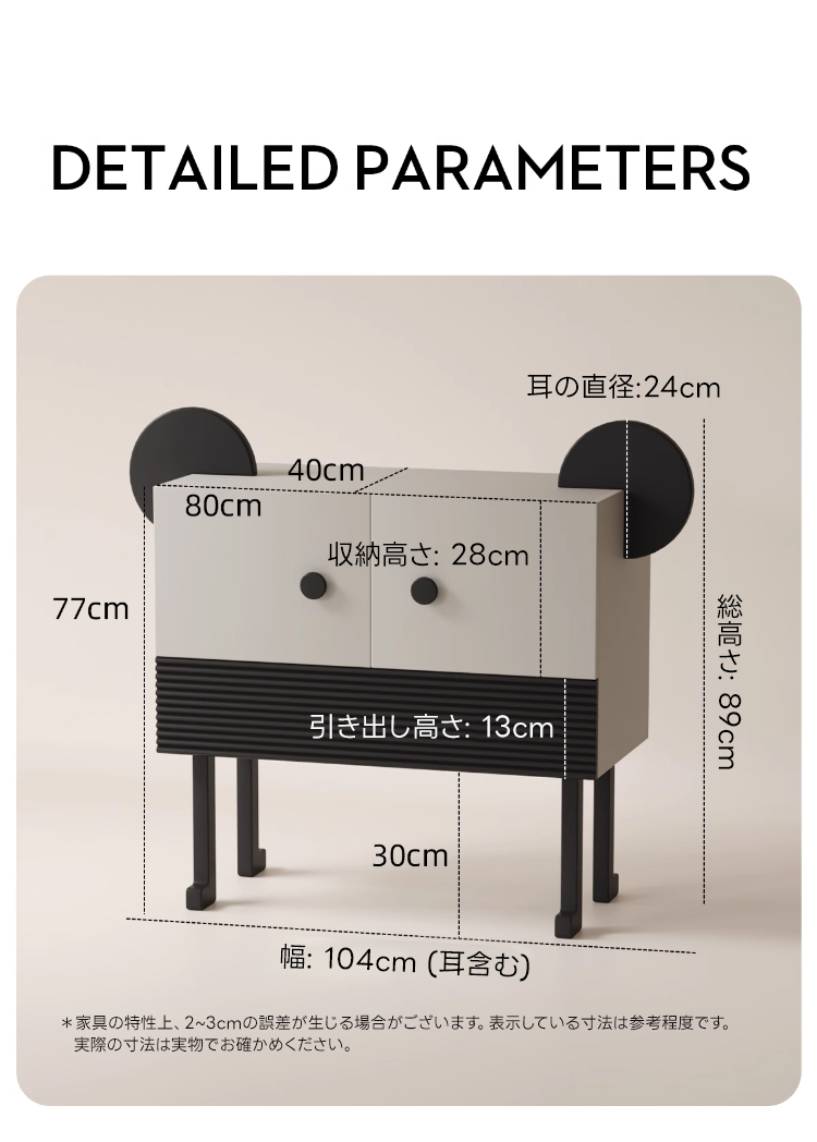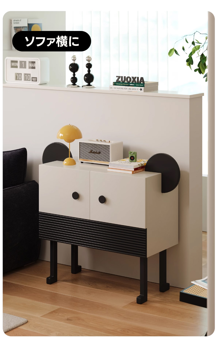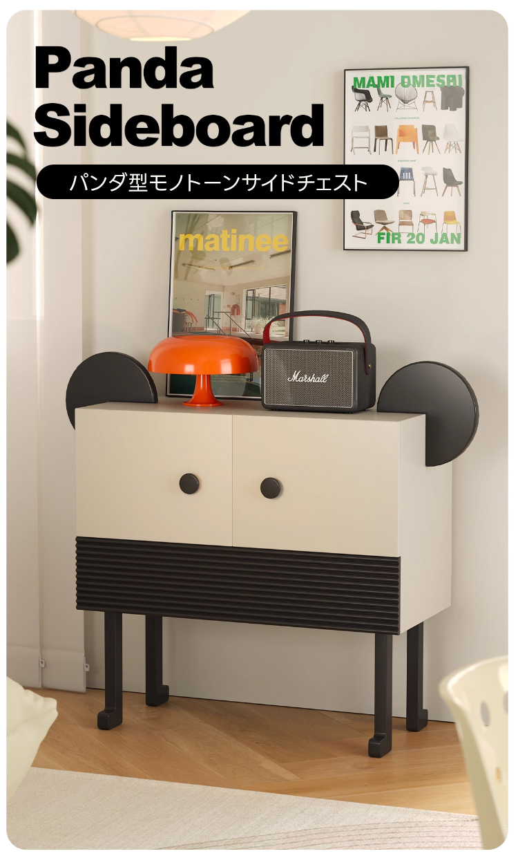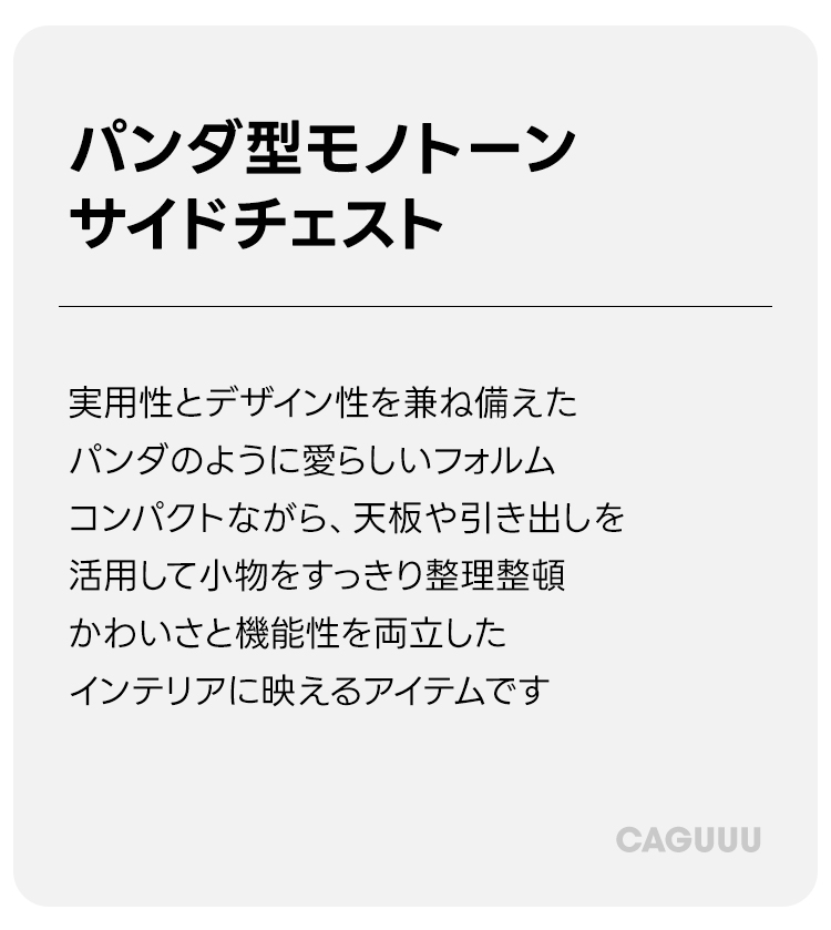 - 【愛らしいパンダデザインと機能性】パンダ型モノトーンサイドチェストは、ユニークなパンダデザインが特徴で、どんなインテリアにもマッチします。コンパクトなサイズながらも、天板や引き出しを活用して小物を整理整頓できる機能性を兼ね備えています。