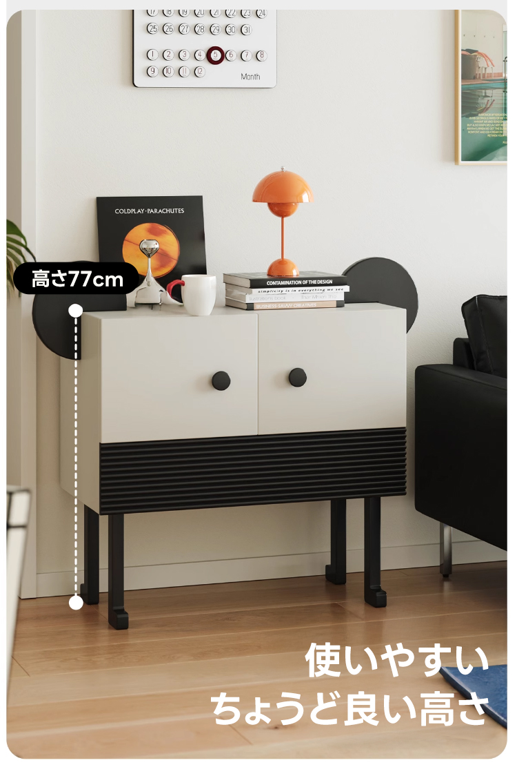- 【多様な適用シーン】このサイドチェストは、リビングやベッドサイド、玄関など様々な場所で活躍します。カップルやファミリー、一人暮らしの方にも最適で、ポップなデザインが暮らしに楽しさをプラスします。