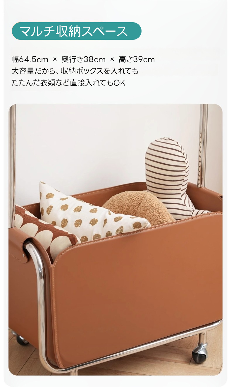 - 【スタイリッシュな収納ソリューション】このレザー調ハンガーラックは、スタイリッシュで機能的なデザインが特徴です。合皮のレザー調仕上げが高級感を演出し、どんなインテリアにもマッチします。衣類や小物を効率よく収納できる2WAY設計で、空間をすっきりと整理します。