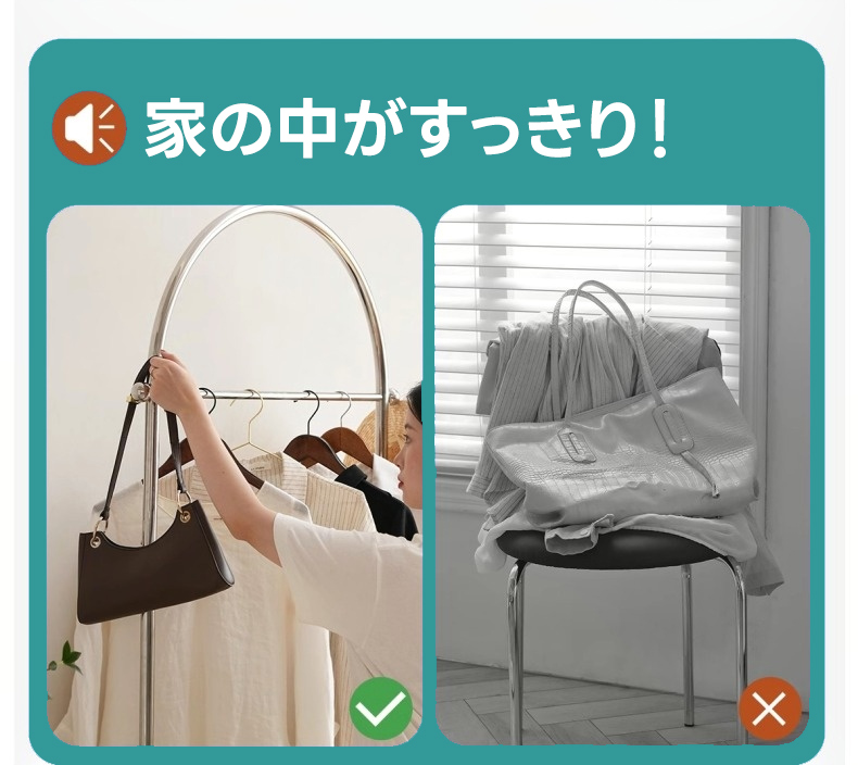 - 【多様な適用シーン】カップルやファミリー、一人暮らしの方に最適なこのハンガーラックは、寝室やベッドルームにぴったりのデザインです。コンパクトなサイズで玄関や狭いスペースにも設置可能です。パステルホワイトのカラーが部屋を明るく彩ります。