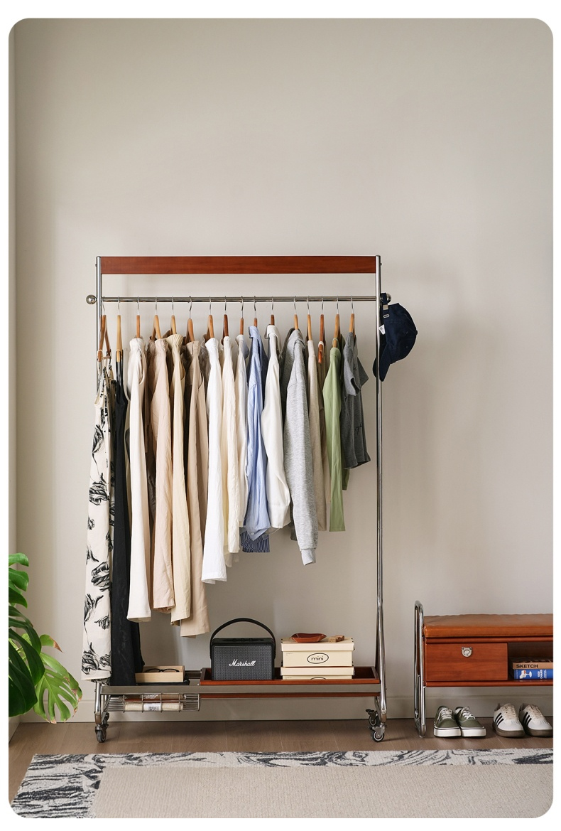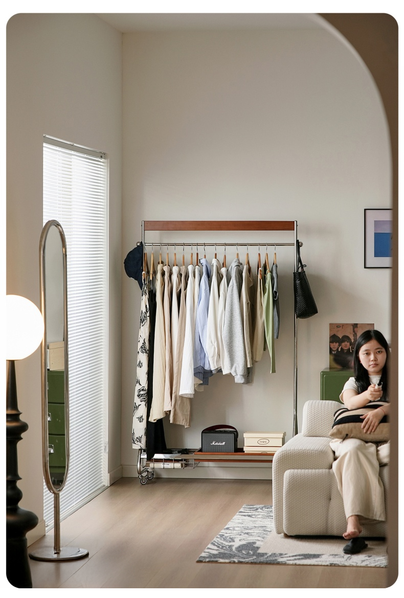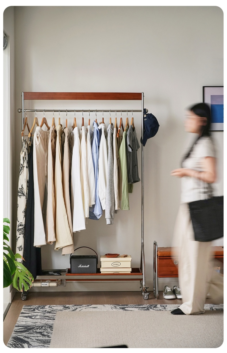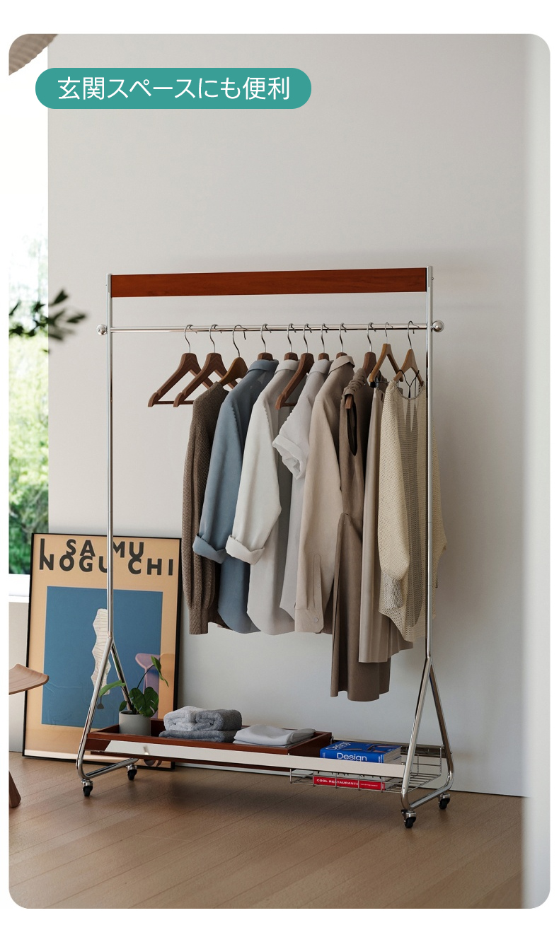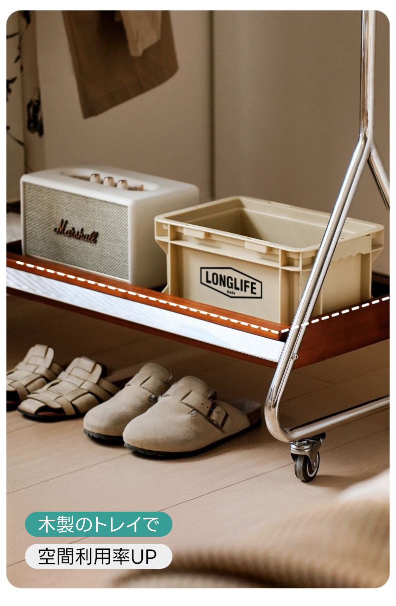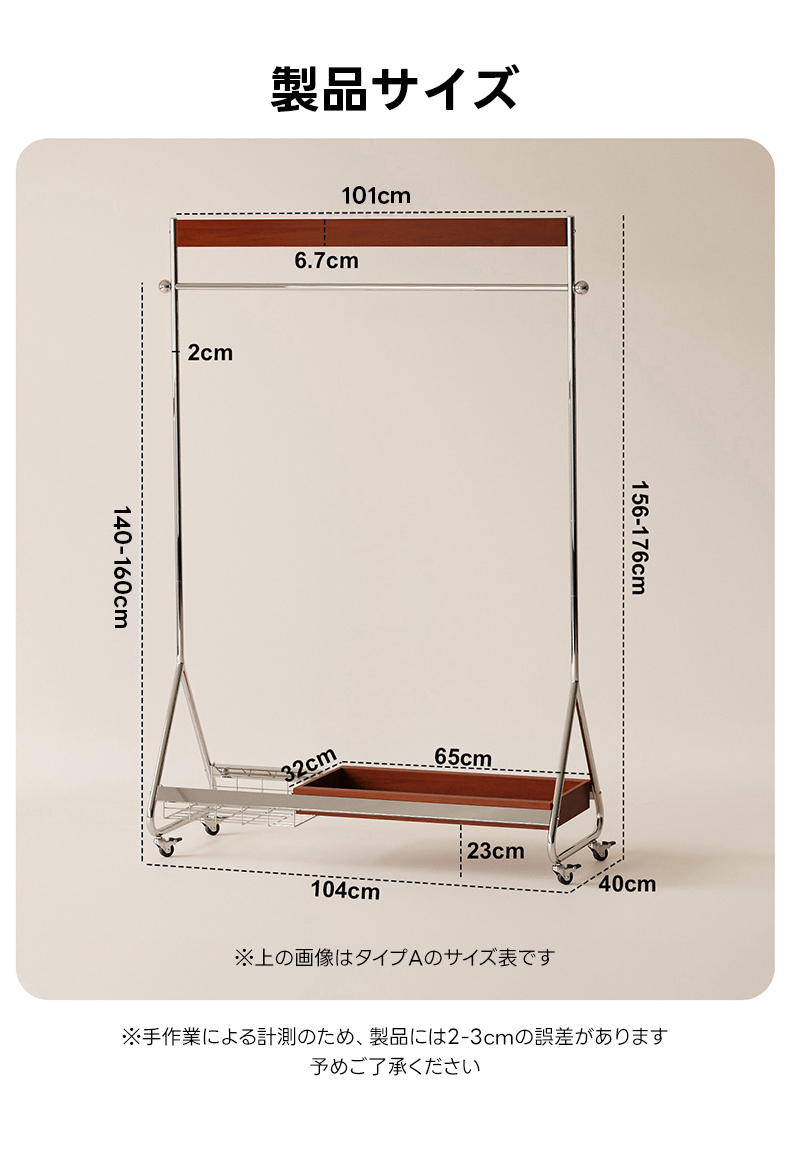 - 【優れた収納力と機能性】ウッドラインハンガーラックは、25着以上の衣類を収納可能な大容量設計。高さは156cmから176cmまで調整可能で、長い衣類も余裕で収納できます。キャスター付きで移動がスムーズ、ロック機能も付いており安全に使用できます。