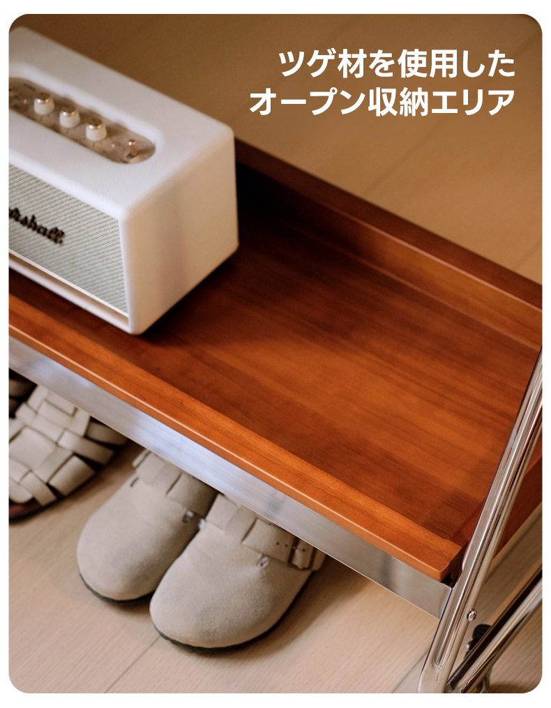 - 【高品質な素材とデザイン】木製のトレイとステンレス製のフレームを使用しており、耐久性に優れています。ステンレスのフレームは直径2cmで安定感があり、耐荷重は80kg以上です。ブラックとブラウンの色合いがどんなインテリアにも調和します。
