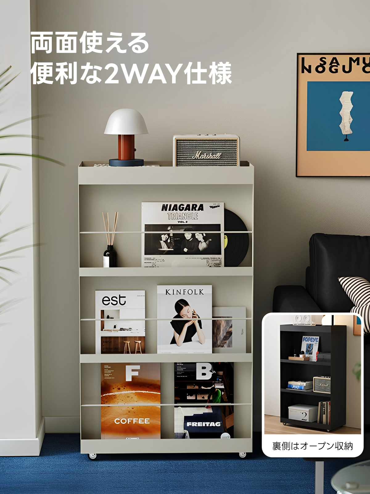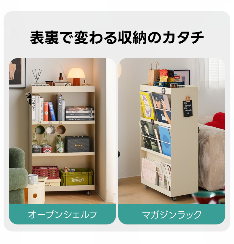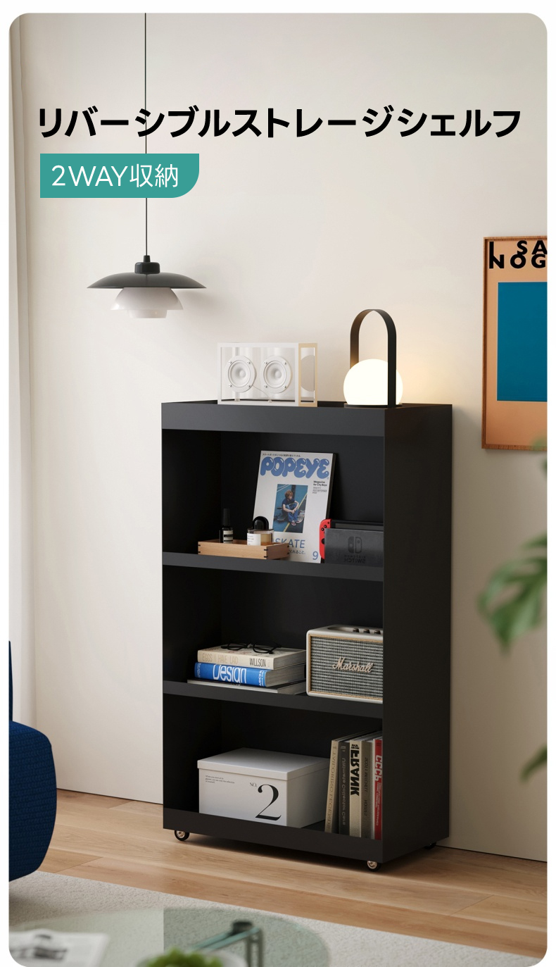 - 【リバーシブルデザインで多機能】このシェルフは、オープンシェルフとしてもマガジンラックとしても使える2WAY仕様です。リバーシブルデザインにより、収納の幅が広がり、どんなインテリアにもマッチします。収納家具としての機能性を最大限に引き出します。