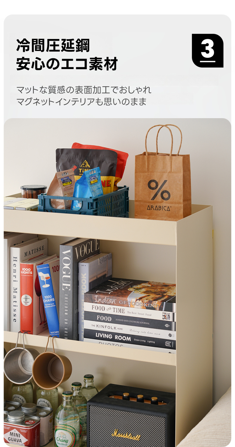 - 【高品質なエコ素材】冷間圧延鋼を使用し、マットな質感の表面加工が施されています。環境に優しい素材で、安心してお使いいただけます。耐久性にも優れ、長期間の使用でも変形しにくい設計です。