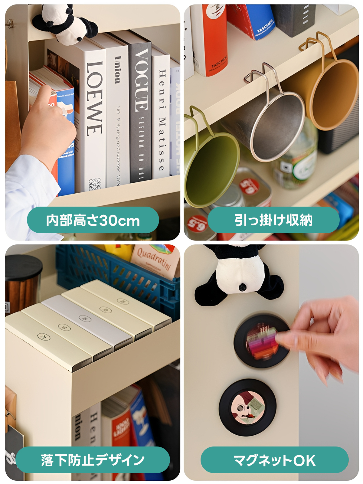 - 【安全設計と安心の使用感】落下防止デザインにより、物が落ちる心配がありません。また、マグネット対応で、側面にメモや写真を貼ることもできます。組み立て不要の完成品で、届いたその日からすぐに使用可能です。